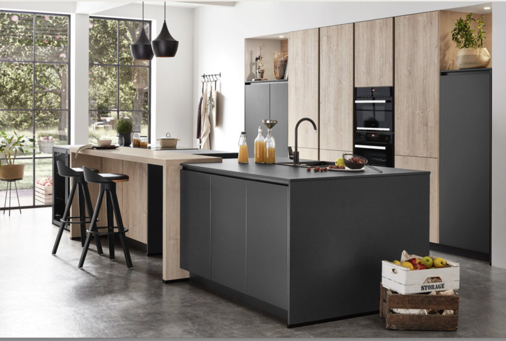 De plus, en choisissant cette association de bois et de noir, vous apporterez un charme infini à cette pièce. La noblesse du décor bois aspect chêne authentique mêlée à l’élégance du noir mat pour une cuisine unique. Votre cuisine sur-mesure marquera une réelle identité dès que vous entrerez dans cette pièce.