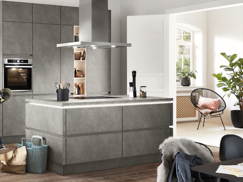 Associez vos façades Gris Taupe avec un magnifique plan de travail aspect marbre en Décor Venato Nero. Ces deux éléments seront les principaux de votre cuisine luxueuse et affirmeront son caractère dès le premier coup d’œil…
