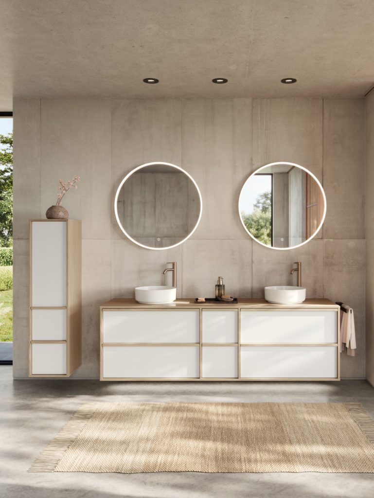 Misez sur des lignes nettes et des surfaces dégagées. Les meubles suspendus, les finitions mates et les miroirs rétroéclairés agrandissent visuellement l’espace et apportent une véritable sensation de légèreté. La lumière deviendra également un élément clé de votre décoration, mettant en valeur les volumes et les matières.