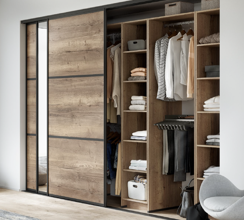 Par exemple, si vous disposez d’un espace pour intégrer votre dressing encastré sur-mesure, nous pourrons vous proposer les portes coulissantes de vos rêves et alterner entre coulissants en bois avec des séparations métalliques et coulissants avec des miroirs.